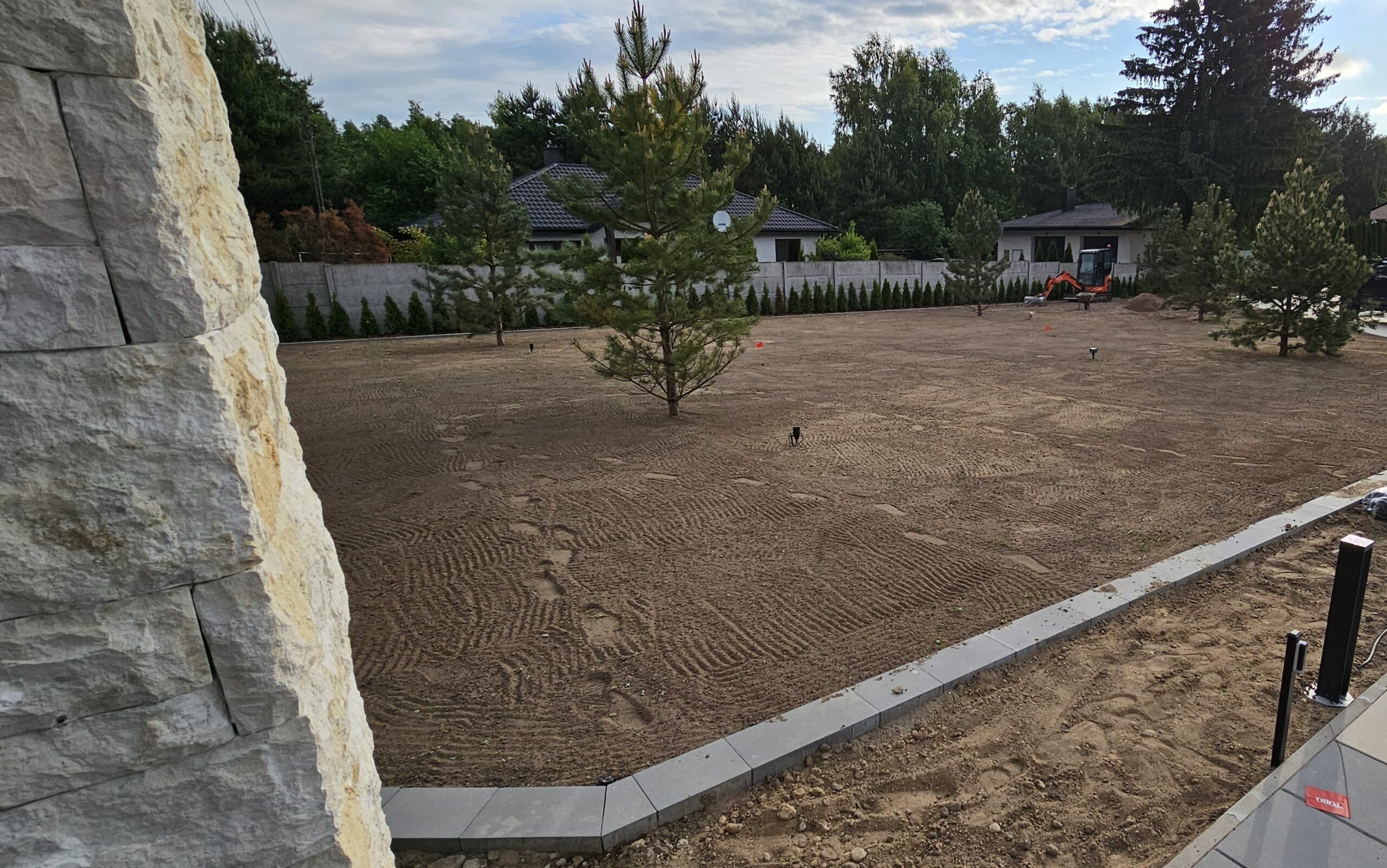 Na początku zajęliśmy się niwelacją i oczyszczeniem terenu. Następnie zainstalowaliśmy drenaż odwadniający.🍃
